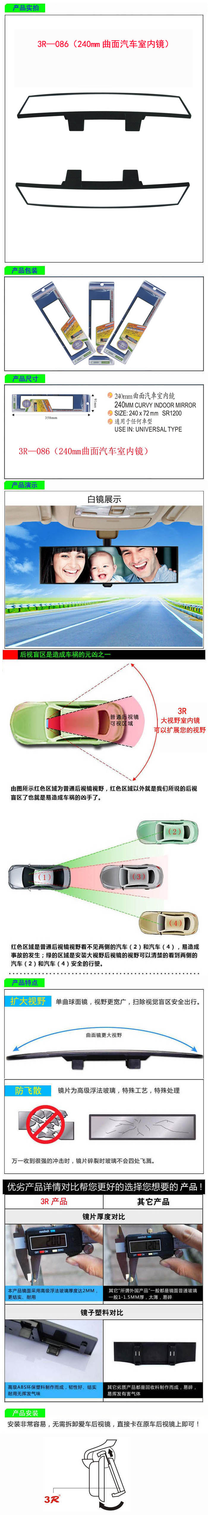 • 型號:   3R—086(240mm曲面汽車室內鏡)