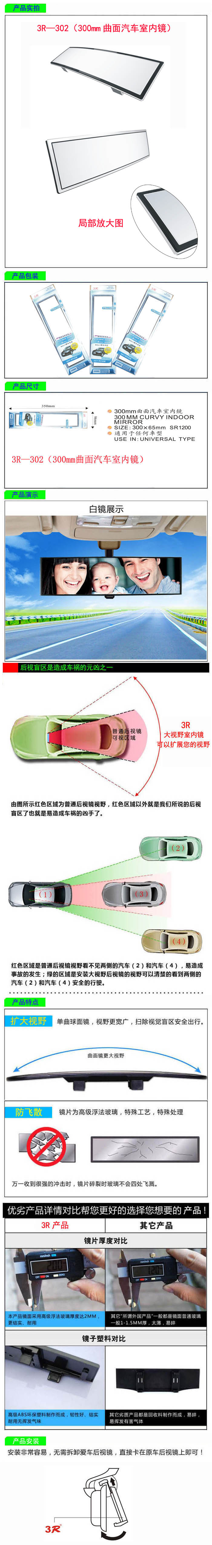 • 型號(hào):   3R—302(300mm曲面汽車室內(nèi)鏡)