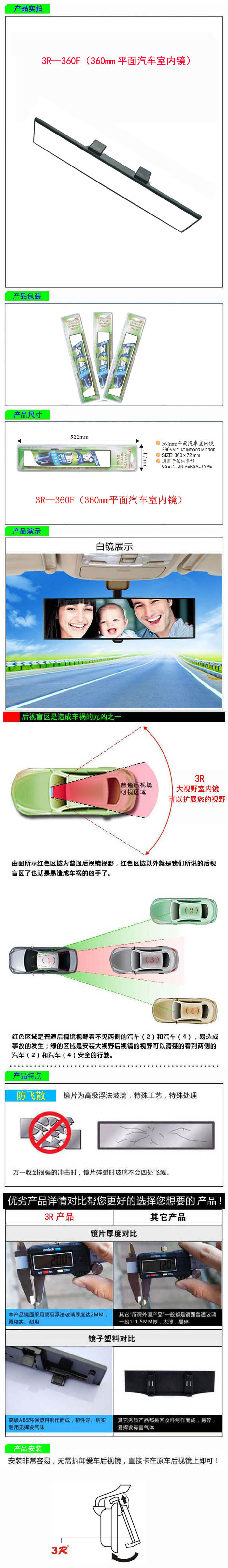 • 型號:   3R—360F(360mm平面汽車室內鏡)