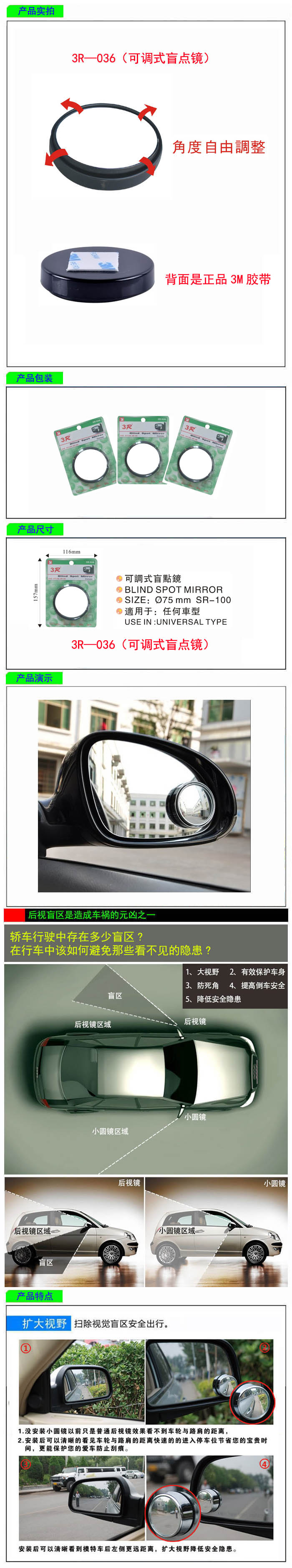 • 型號:   3R—036(可調式盲點鏡)