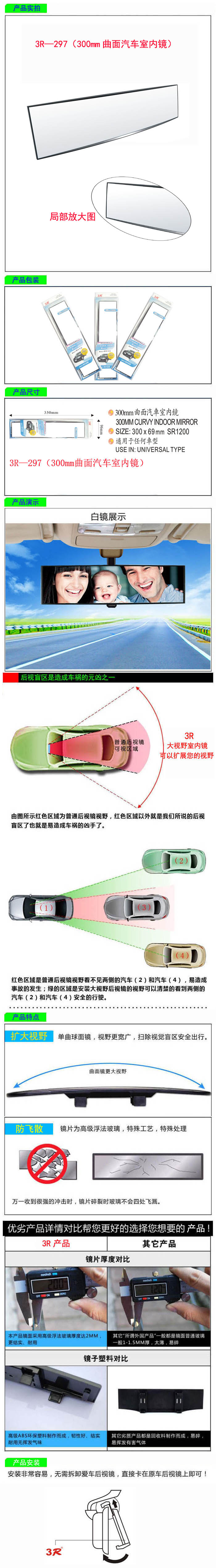 • 型號:   3R—297(300mm曲面汽車室內(nèi)鏡)