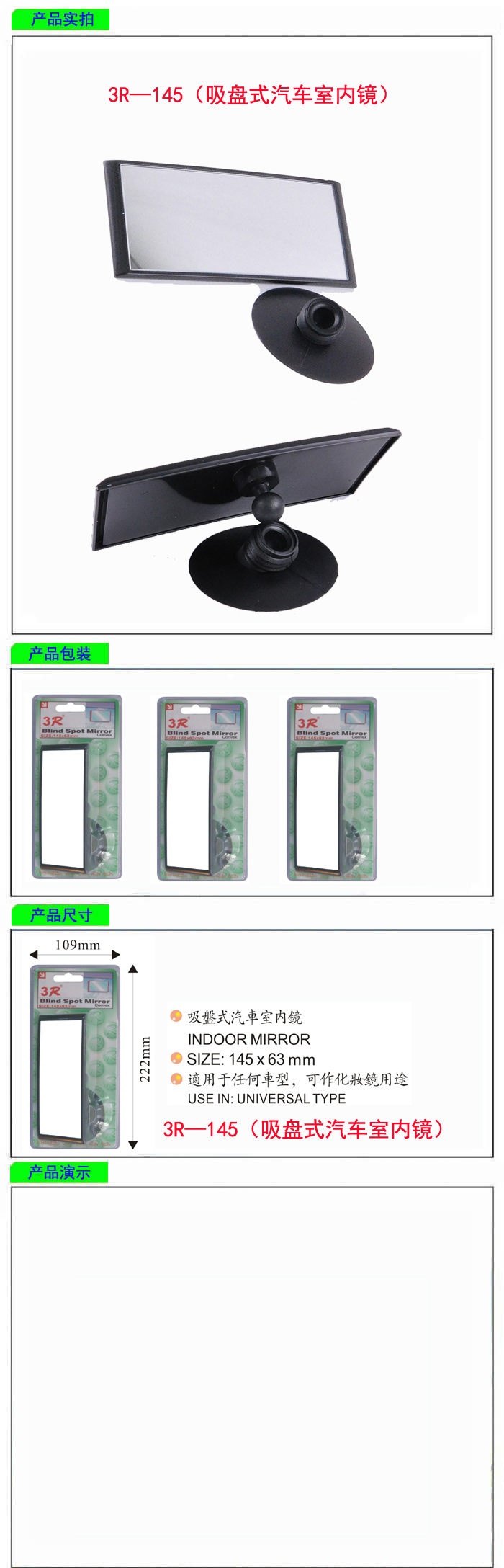 • 型號:   3R—145(吸盤式汽車室內鏡)