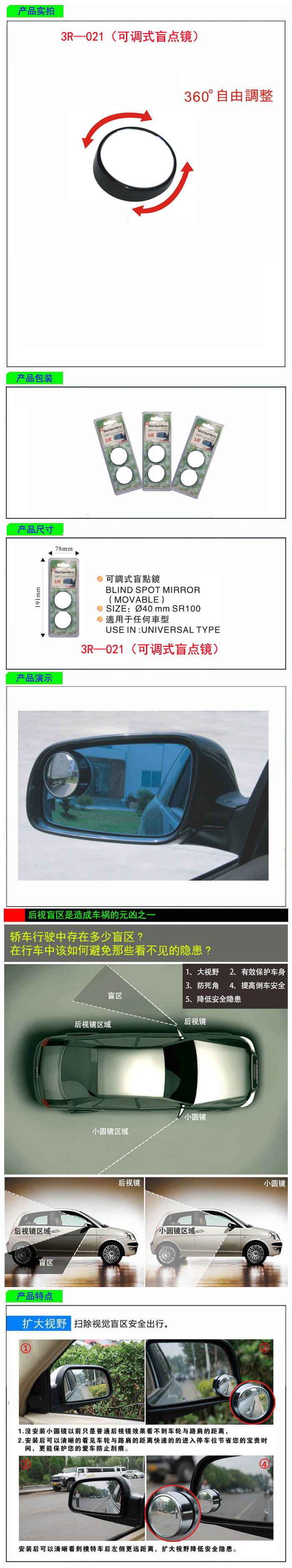 • 型號:   3R—021(可調式盲點鏡)